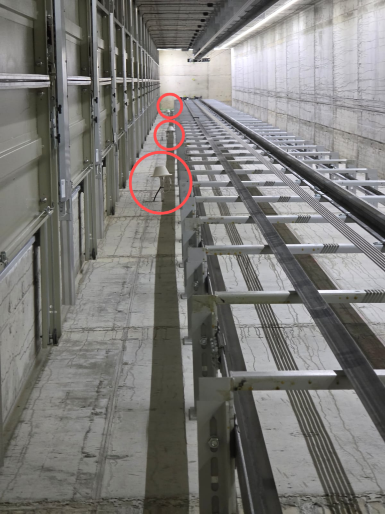 Figure 5. Internal antennas installed in the elevator shaft at levels 2, 6, 12, and 18.